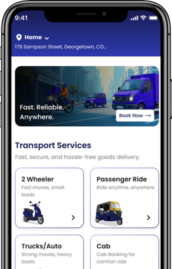 • From quick two-wheeler deliveries for small packages to large trucks for heavy shipments, our platform offers flexible logistics solutions.